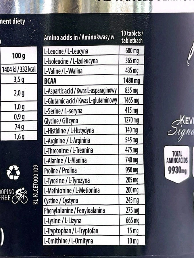 ۱۴۰۰ mg BCAA (شامل: ۶۰۰ mg لوسین – ۳۶۵ mg ایزولوسین – ۴۳۵ mg والین)