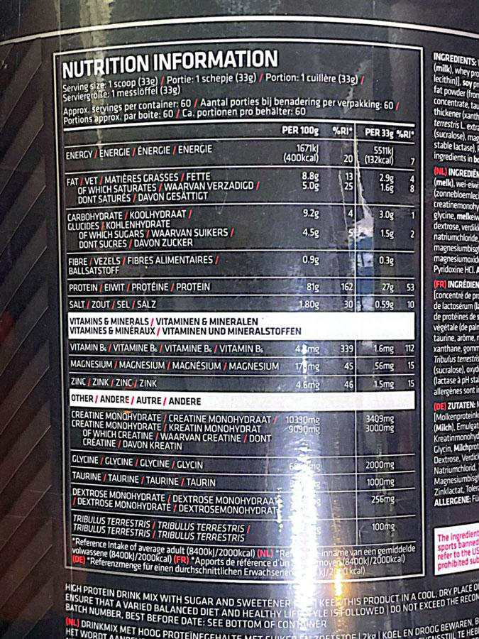 ترکیبات هر سروینگ (۳۳ گرم) وی هاردکور gH لاین انگلستان: